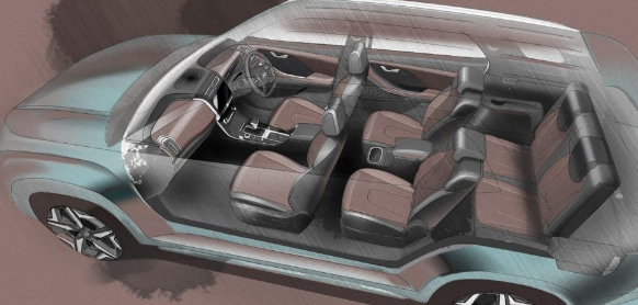 根据现代汽车的说法,第二排和第三排都有足够的空间供乘员使用,设计草图也暗示了相同的含义。但是,仔细观察,很明显第二排座椅在草图中向前放置。